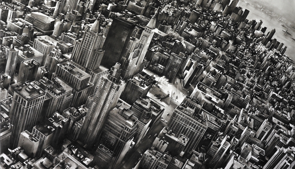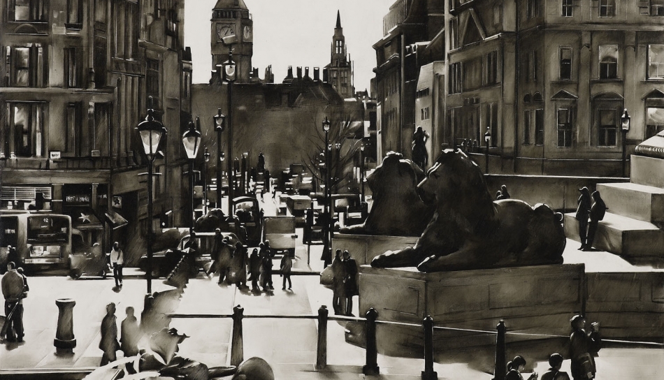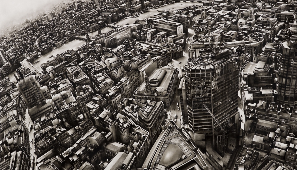 This is in stark contrast to some of her intricate cityscapes of New York and London. In these, space is scarce and individuals are unidentifiable. When seen along side each other, these works provide a poignant depiction of the individual within a metropolis.